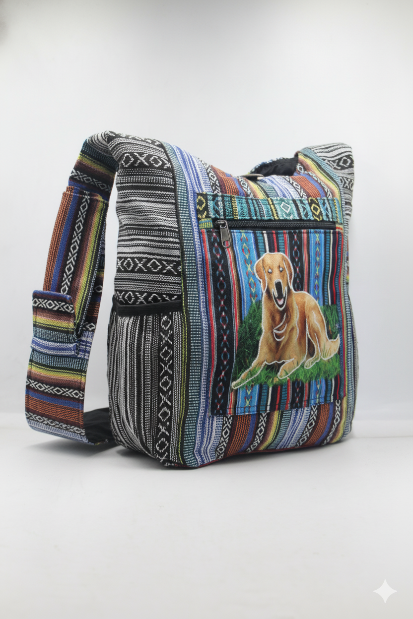 The Dog Print Gheri Shoulder Bag is a handmade bohemian hippie travel bag crafted by skilled artisans in Nepal. Featuring a playful dog print combined with traditional Gheri fabric, this lightweight and durable shoulder bag blends ethnic charm with everyday practicality. Designed for comfort and versatility, it is ideal for travel, festivals, street wear, and daily boho style. Each bag is individually handmade, making every piece unique in color and pattern.