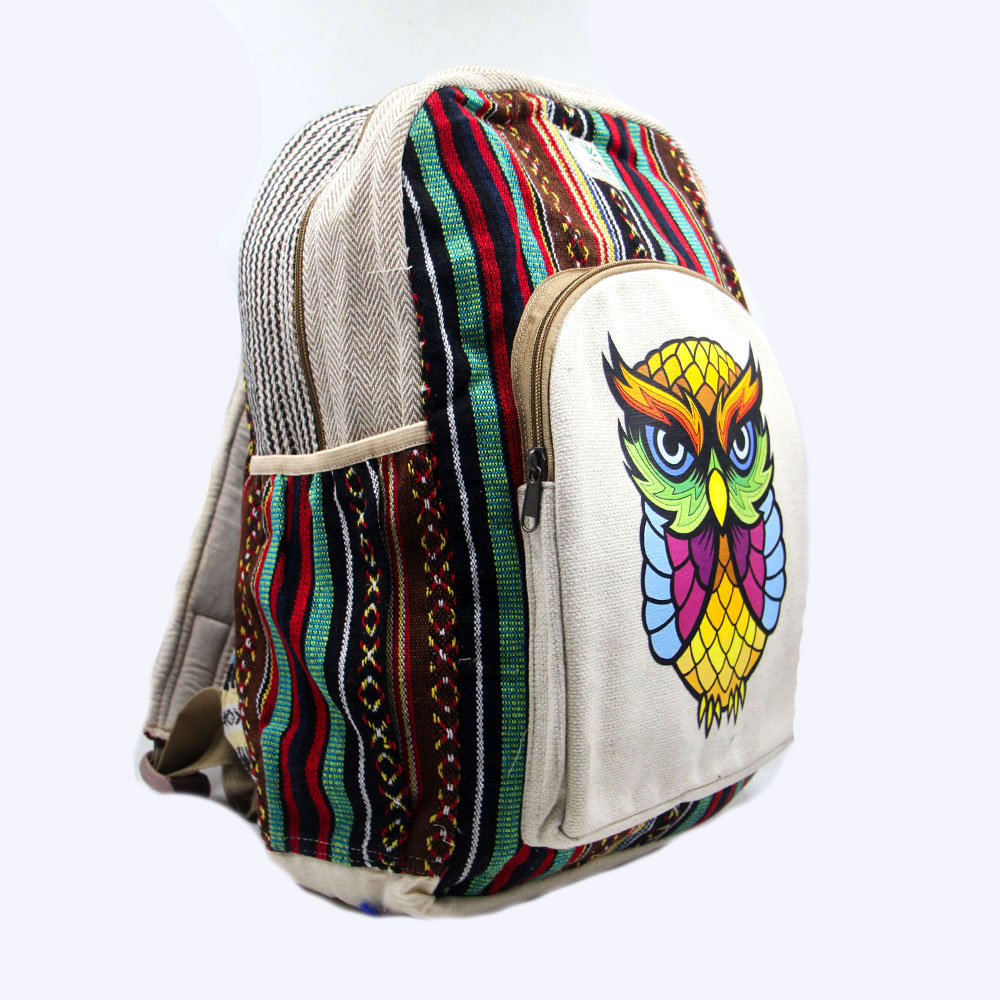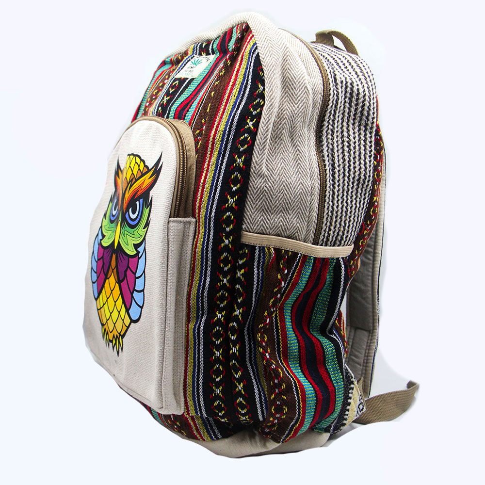 Proudly handcrafted in Nepal by skilled Nepali artisans, this unique hemp backpack features a charming owl print that symbolizes wisdom and nature. Made from 100% natural hemp fabric, it’s durable, sustainable, and perfect for everyday use with a conscious lifestyle.