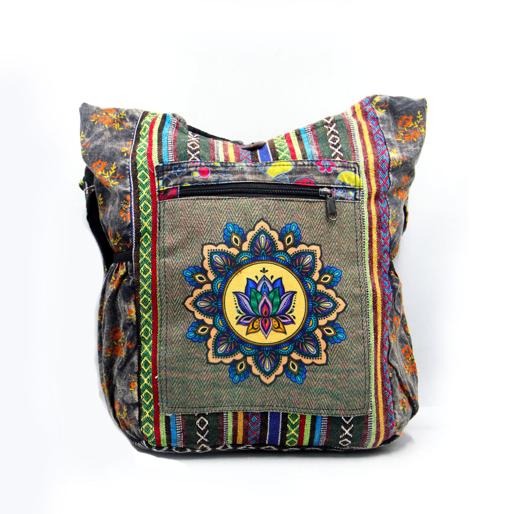 The Gheri Shoulder Bag with Lotus Flower Print is a handmade boho festival bag crafted by skilled artisans in Nepal. Featuring a vibrant lotus flower print and traditional Gheri design, this lightweight and durable shoulder bag is perfect for festivals, travel, street wear, and everyday bohemian fashion. Each bag is handmade, ensuring unique patterns and colors for a one-of-a-kind accessory.